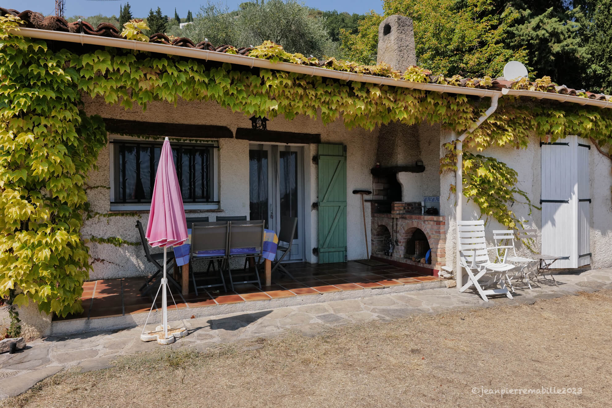 Ce petit mas de plain pied situé au milieu de la propriété est entouré d’un jardin privé engazonné et fleuri.