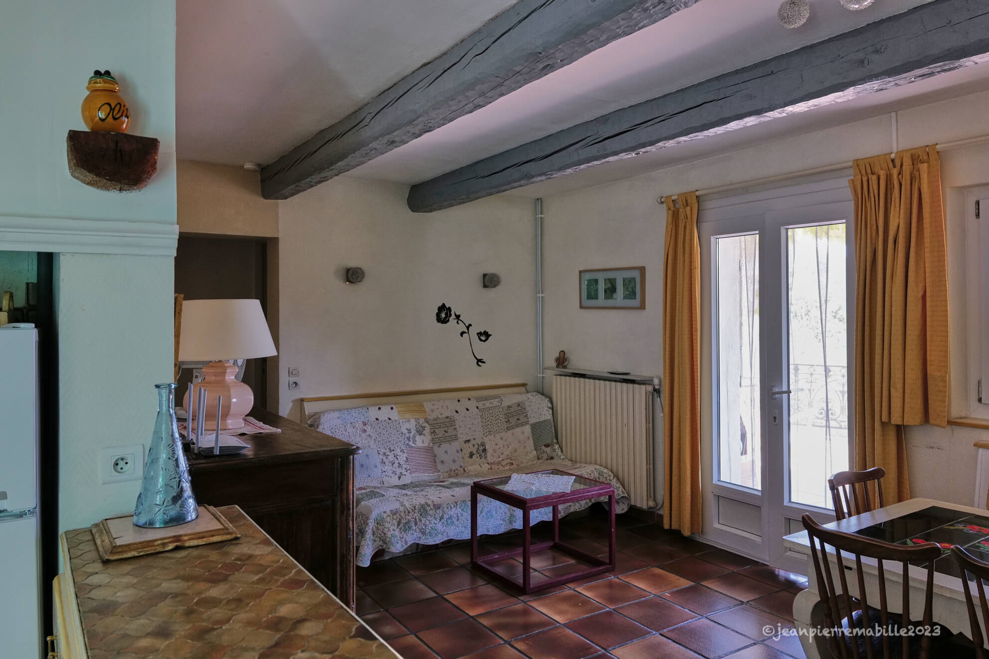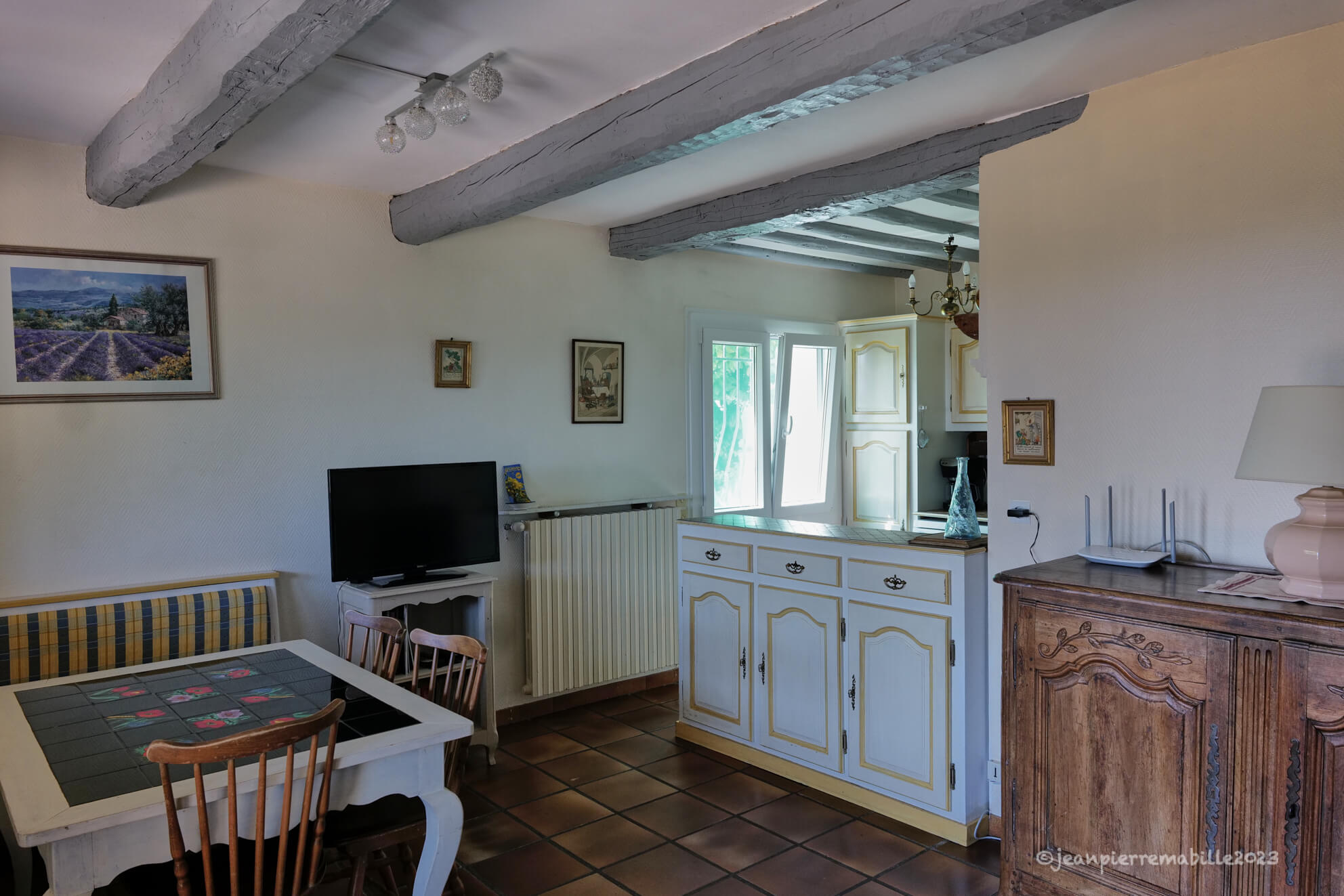 • Le séjour donne par une porte-fenêtre sur une terrasse couverte avec barbecue.