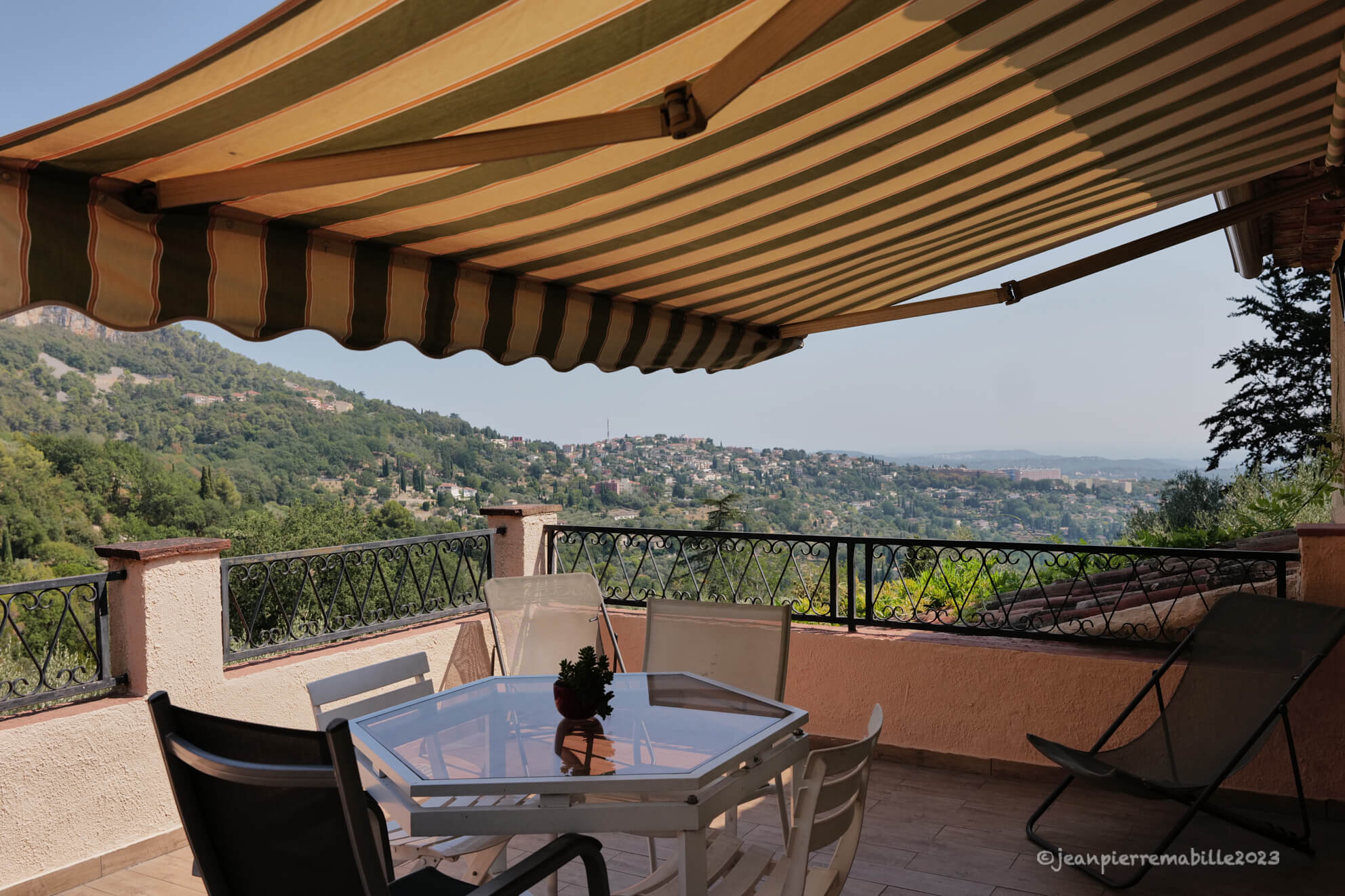 Grande terrasse 22m² plein sud avec vue sur Grasse et sur la mer.